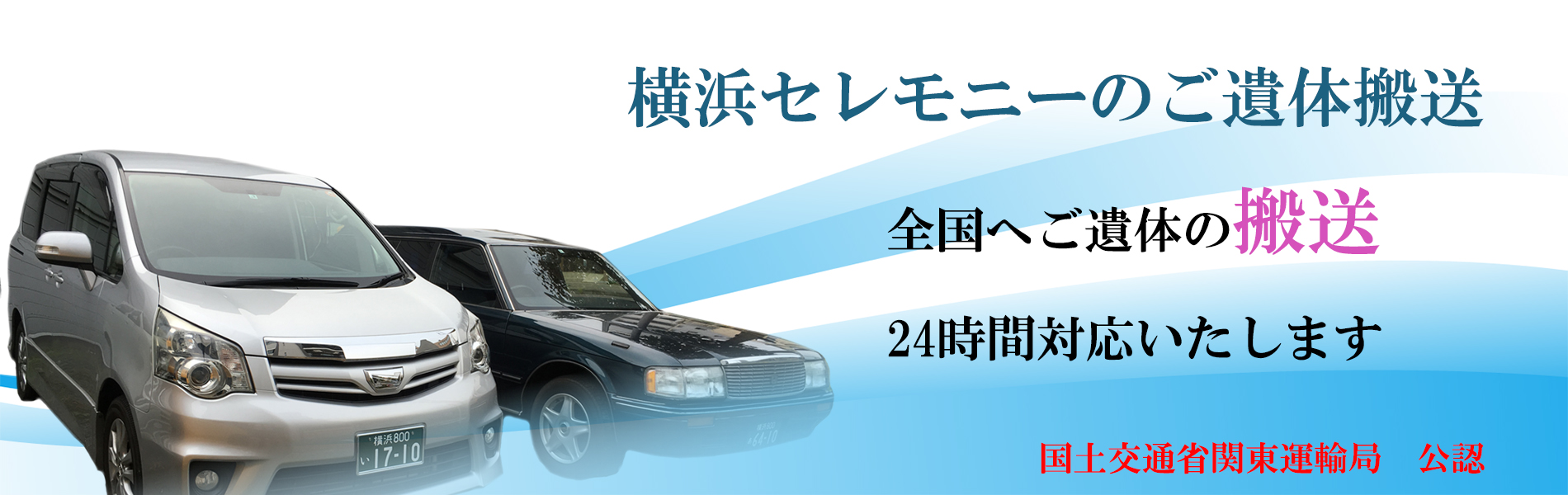 横浜セレモニーは、国土交通省・関東運輸局公認の遺体搬送事業者です。法令を厳守した安全な運行管理のもと、許可を受けた遺体搬送専用車と、国家資格「運行管理者」を有するスタッフが、すべての搬送業務を24時間体制で徹底管理しております。また、厚生労働省認定「葬祭ディレクター」資格を持つ専門スタッフが、ご遺族様のお気持ちに寄り添いながら、大切な故人様を全国どこへでも安全かつ丁寧にご搬送。長距離搬送・深夜対応など、どのような状況にも迅速に対応し、誠実で安全な遺体搬送をご提供いたします。